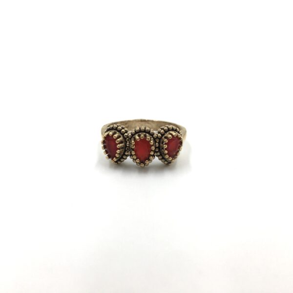 Üç Taş Damla Yakut Rengi Otantik Bronz Yüzük