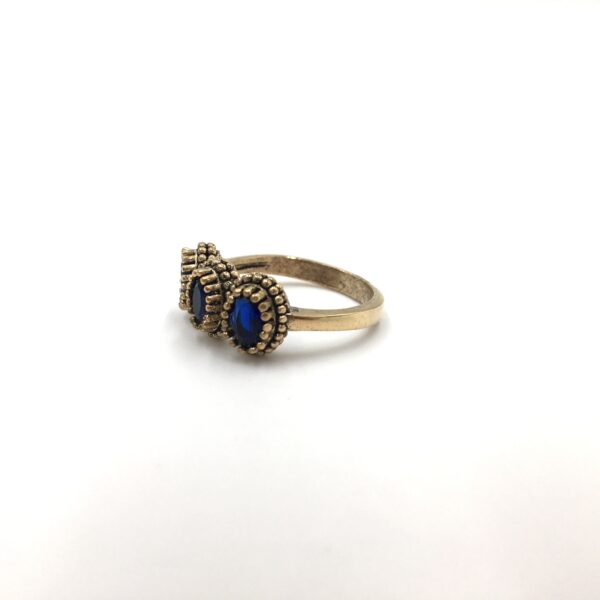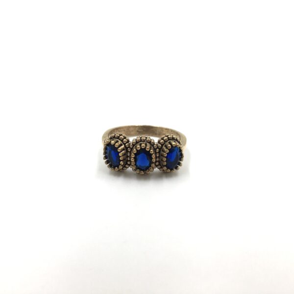 Üç Taş Oval Safir Rengi Otantik Bronz Yüzük