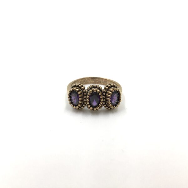 Üç Taş Oval Ametist Rengi Otantik Bronz Yüzük