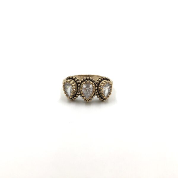 Üç Taş Damla Zirkon Otantik Bronz Yüzük