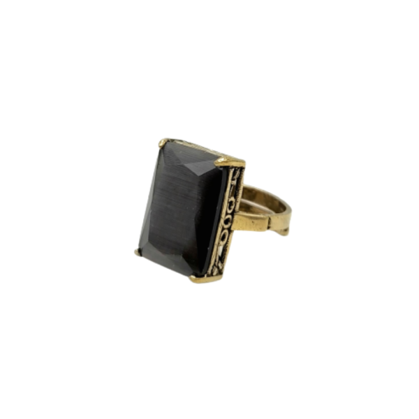 Siyah Kedi Gözü Otantik Bronz Yüzük