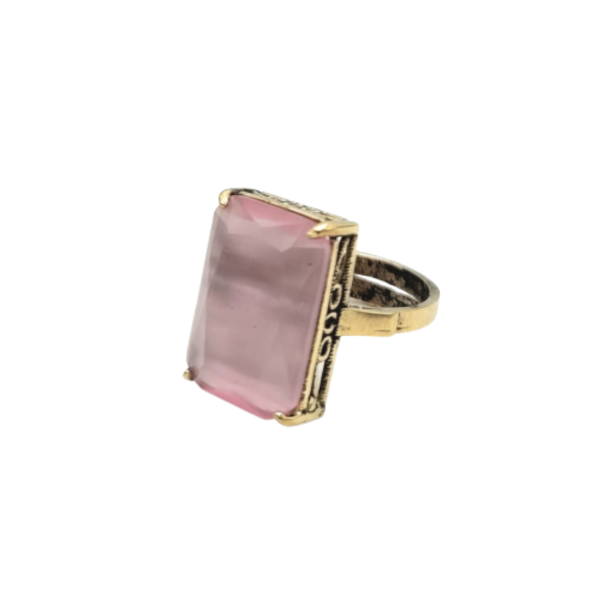 Pembe Yuvarlak Kedi Gözü Otantik Bronz Yüzük