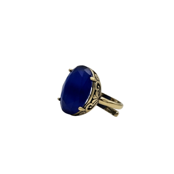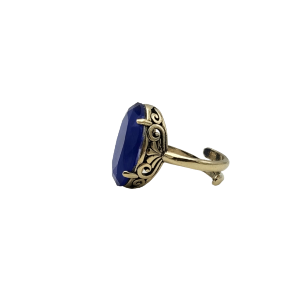 Safir Rengi Oval Tek Taş Otantik Bronz Yüzük