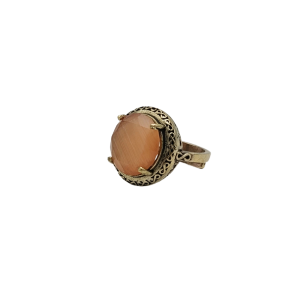 Turuncu Yuvarlak Kedi Gözü Otantik Bronz Yüzük