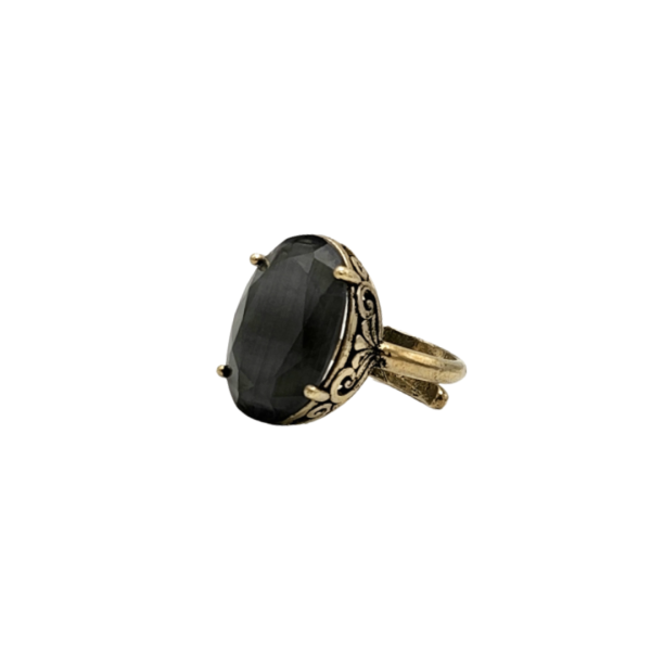 Siyah Oval Kedi Gözü Otantik Bronz Yüzük