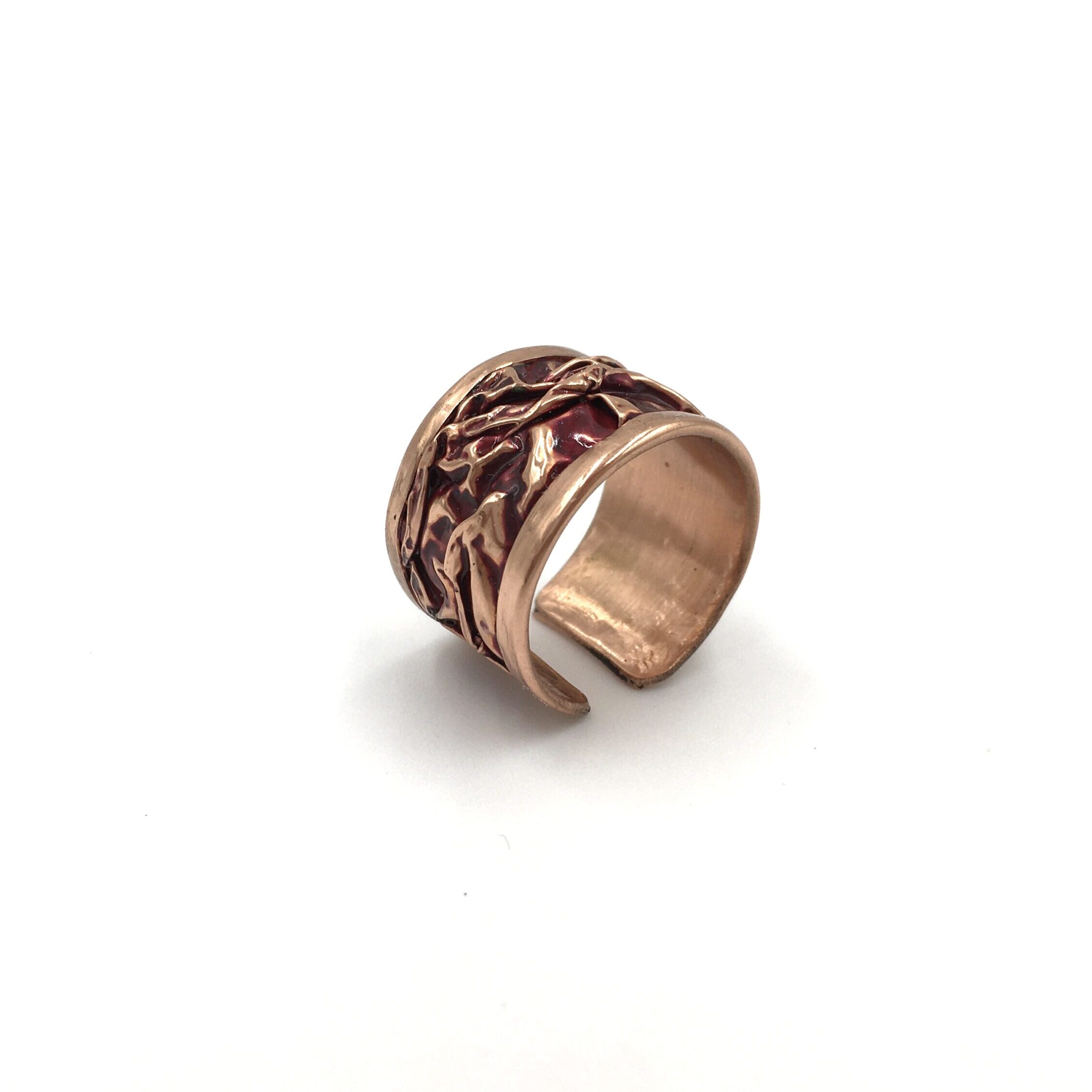 Bordo El İşi Otantik Bakır Buruşuk Yüzük, bakır malzemenin otantik ve sıcak dokusunu öne çıkaran özgün bir tasarımdır. El işçiliği ile hazırlanmış bu yüzük, bakırın doğal görünümünü ve buruşuk yüzey detaylarıyla farklı bir dokunuş sunarak tarzınıza karakter katar. Bakır malzemenin dayanıklılığı ve zarafeti, yüzüğe estetik bir derinlik kazandırırken, el işçiliğinin benzersiz incelikleriyle birleşerek özgün bir aksesuar oluşturur. Ayrıca bakır, vücut için faydalı bir metal olarak bilinir. Antik çağlardan bu yana bakır, vücutta enerji dengesini sağlamaya ve iltihaplanmayı azaltmaya yardımcı olabileceği düşüncesiyle kullanılmaktadır. Aynı zamanda ciltle temas ettiğinde doğal olarak pozitif iyonları artırdığı ve genel sağlığı desteklediği bilinmektedir. Parmağa göre ayarlanabilen yapısıyla her bedene uyum sağlayan bu özel tasarım, hem günlük hem de özel günlerde kullanım olanağı sağlar. Bakır yüzüğün otantik ve çarpıcı görünümü mağazanızın koleksiyonunda dikkat çeken bir parça haline getirecek.
