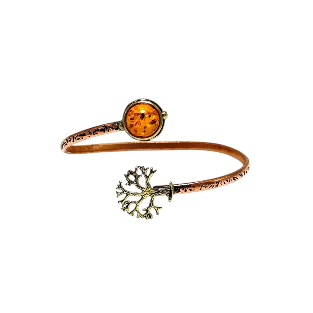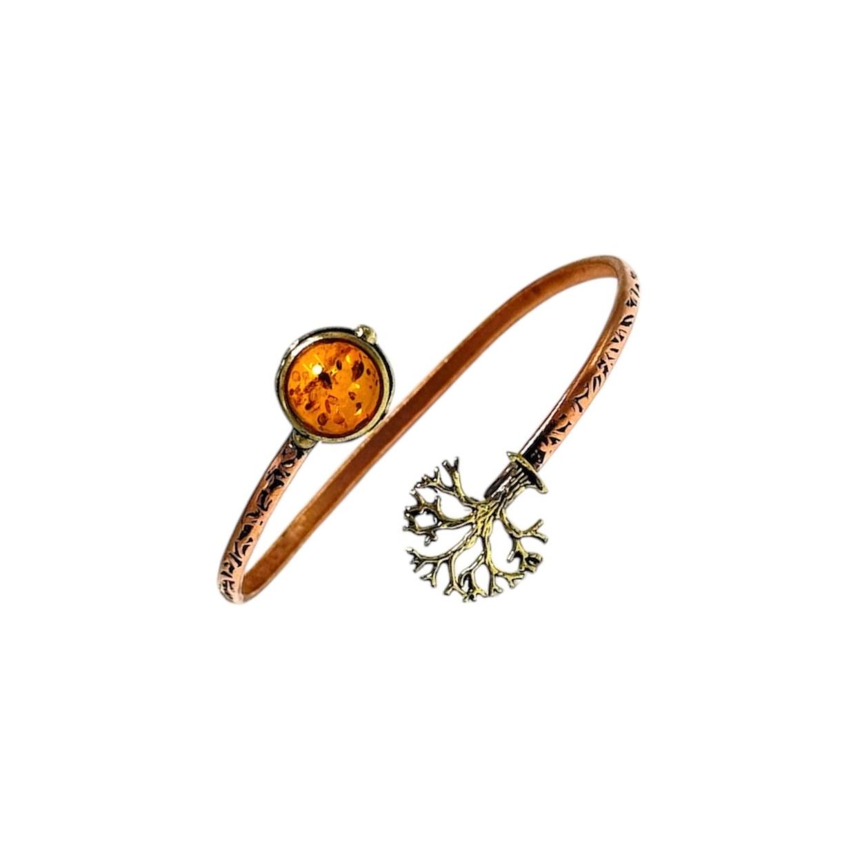 Hayat Ağacı Kehribar Otantik Bakır Bileklik