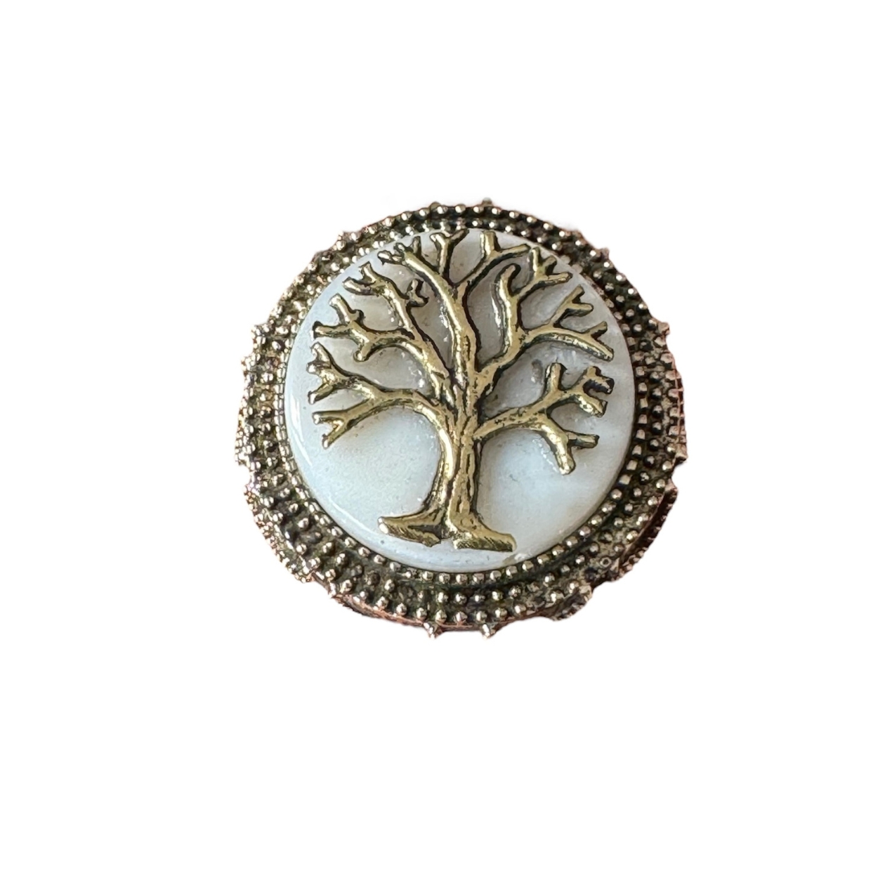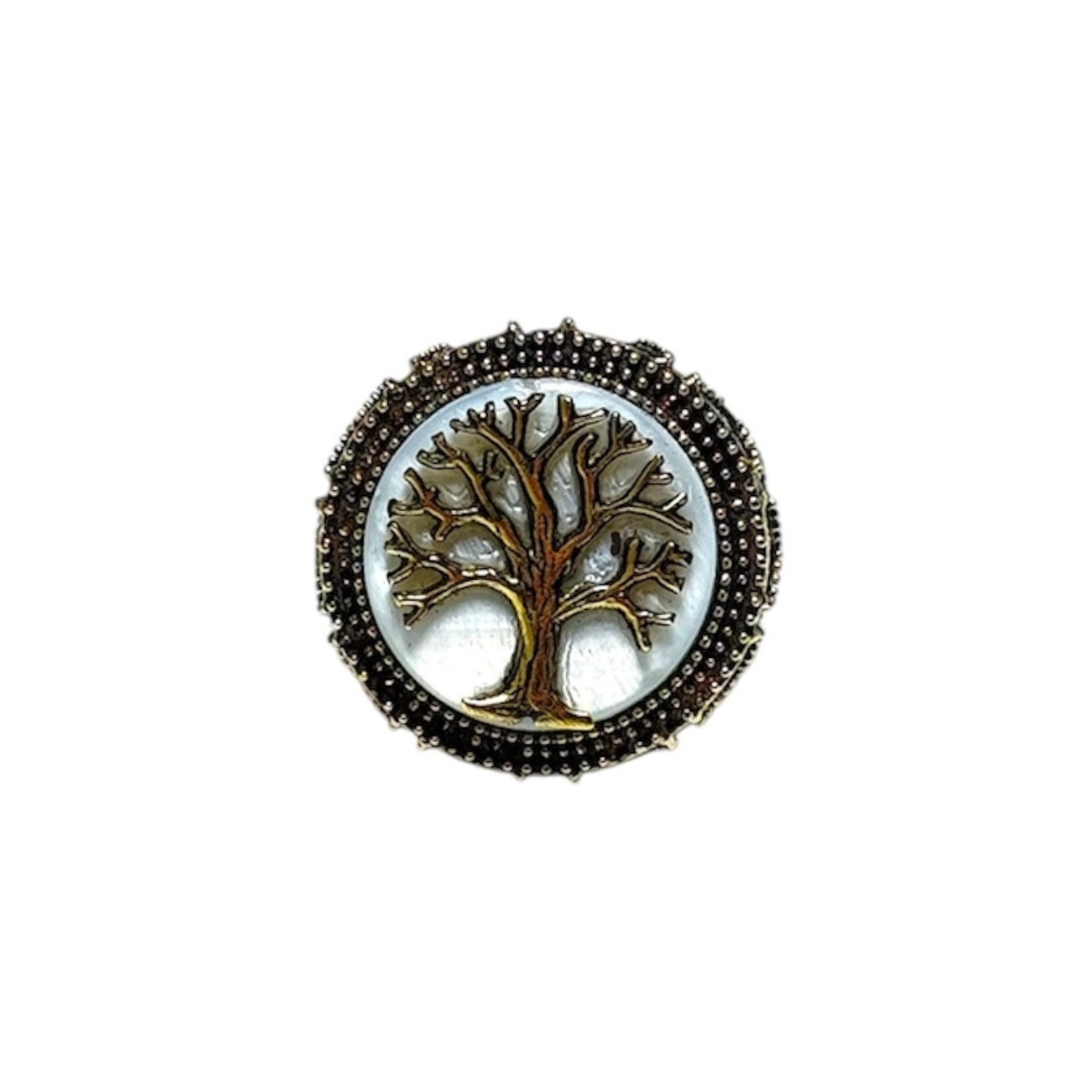 Doğal ve şık tasarımları sevenler için özel olarak üretilen bu yüzük, zarafeti ve anlamı bir araya getiriyor. Madeni bronzdan üretilen yüzüğün orta kısmında parlak sedef taşı bulunmakta olup, üzerine bronz hayat ağacı motifi işlenmiştir. El işçiliğiyle hazırlanan bu özel tasarım, özgün ve estetik görünümüyle dikkat çeker. Bu benzersiz yüzüğü koleksiyonunuza ekleyerek, müşterilerinize hem estetik hem de dayanıklı bir seçenek sunabilirsiniz.