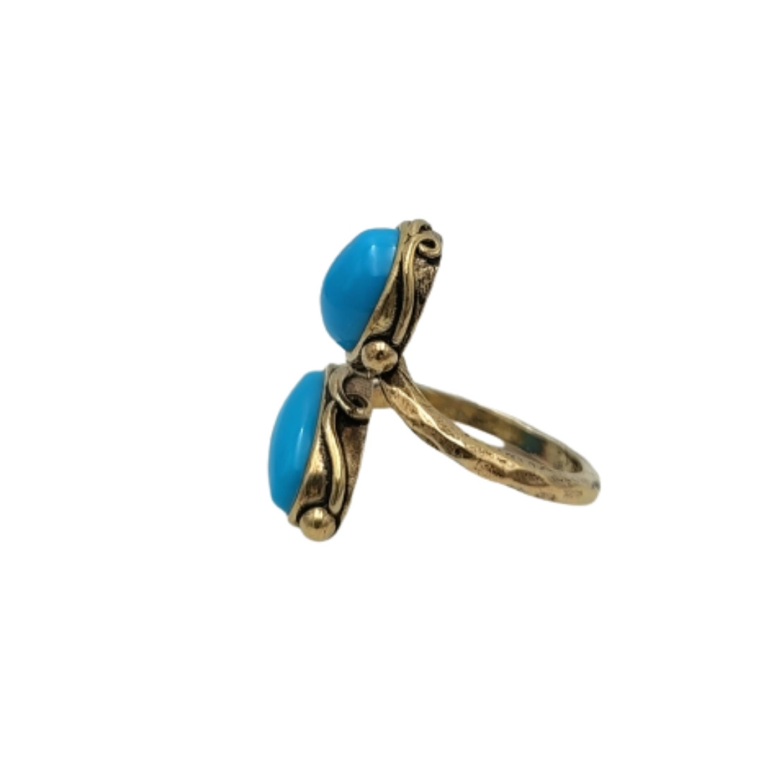 İkili Turkuaz Doğal Taş Otantik Yüzük