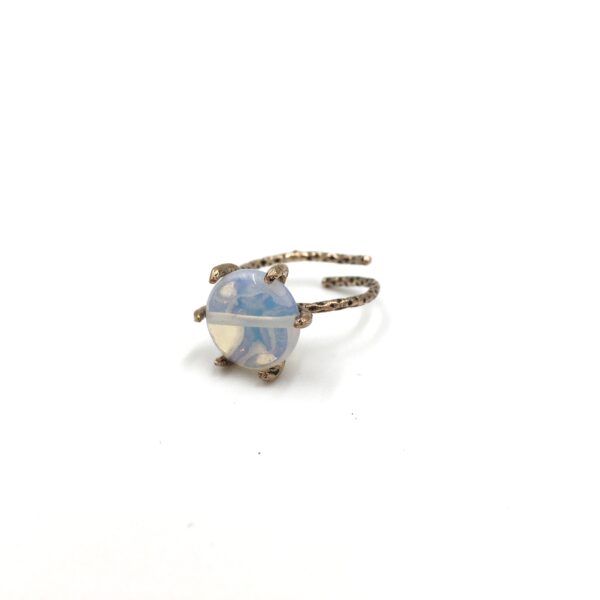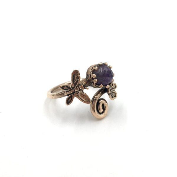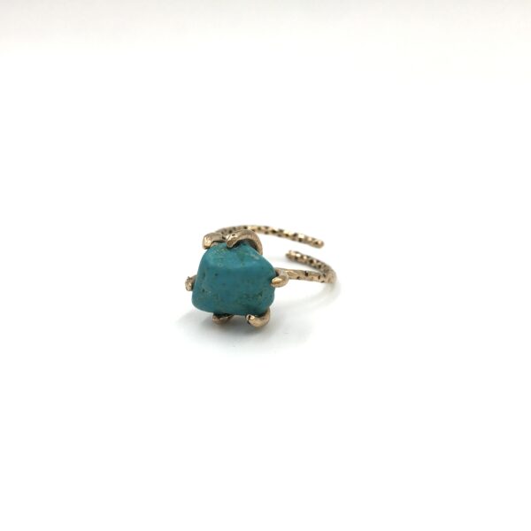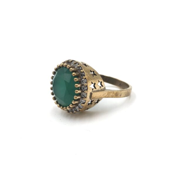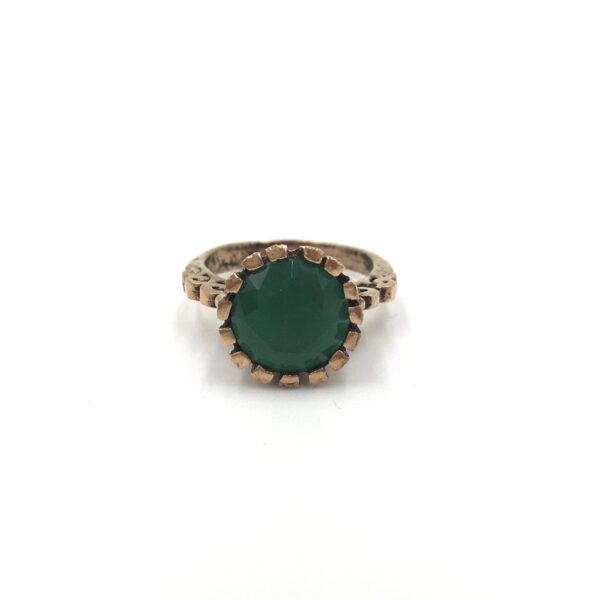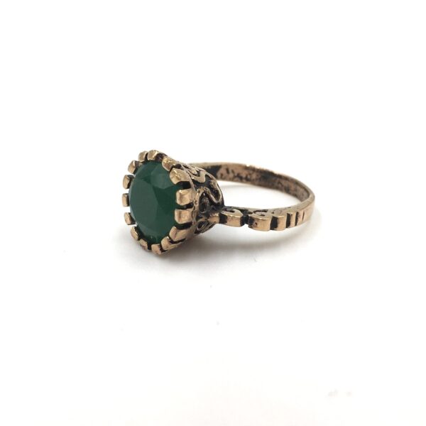 Madeni bronz, kedi gözü, kuyumcu işçiliğiyle üretilmiştir, parmağa göre ayarlanabilir.