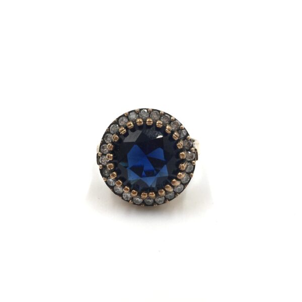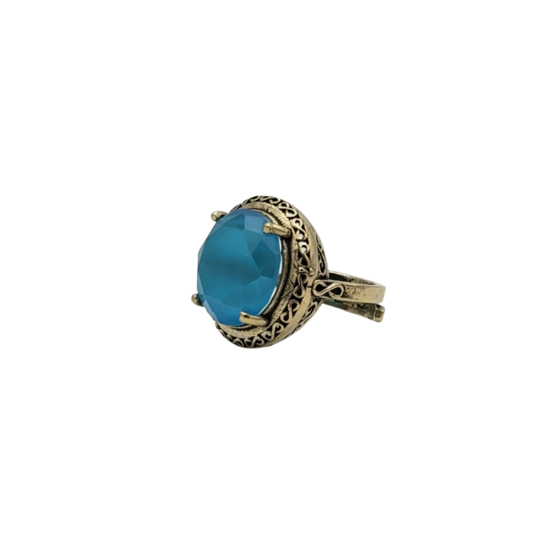 Mavi Yuvarlak Kedi Gözü Otantik Bronz Yüzük