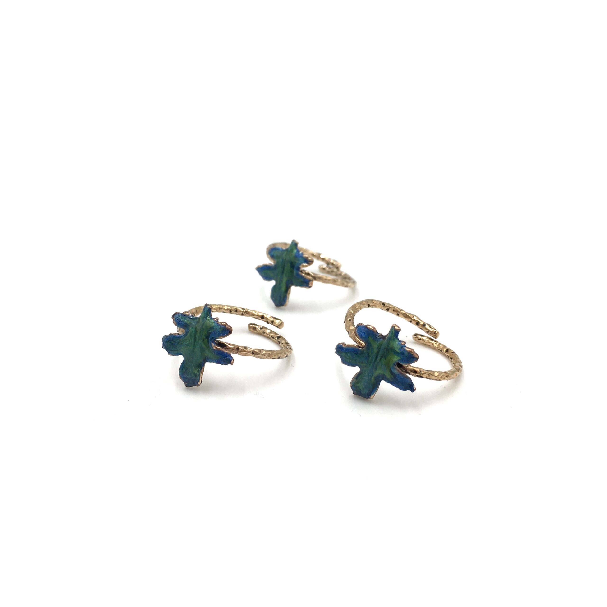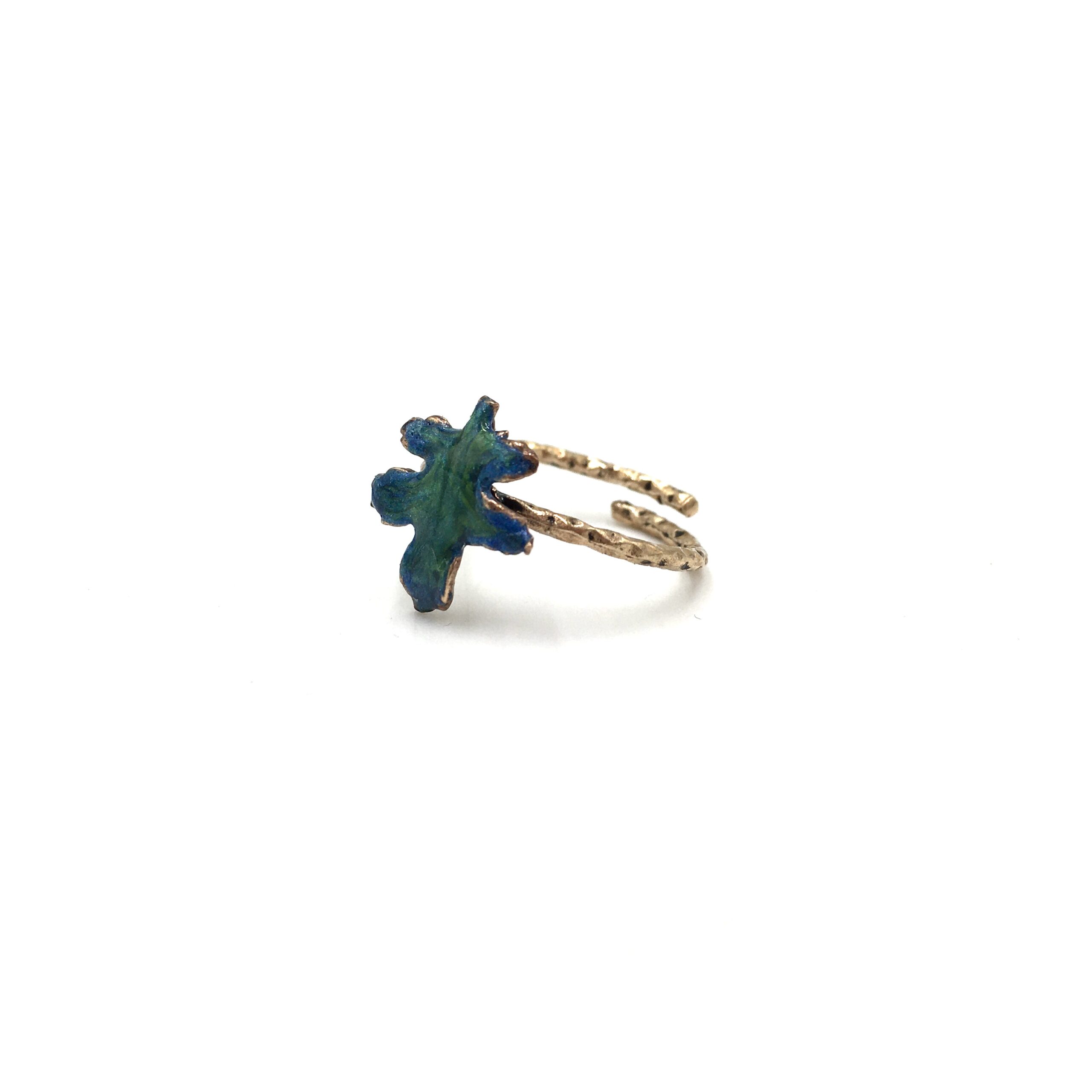 Mineli Çınar Yaprağı El İşi Otantik Bronz Yüzük