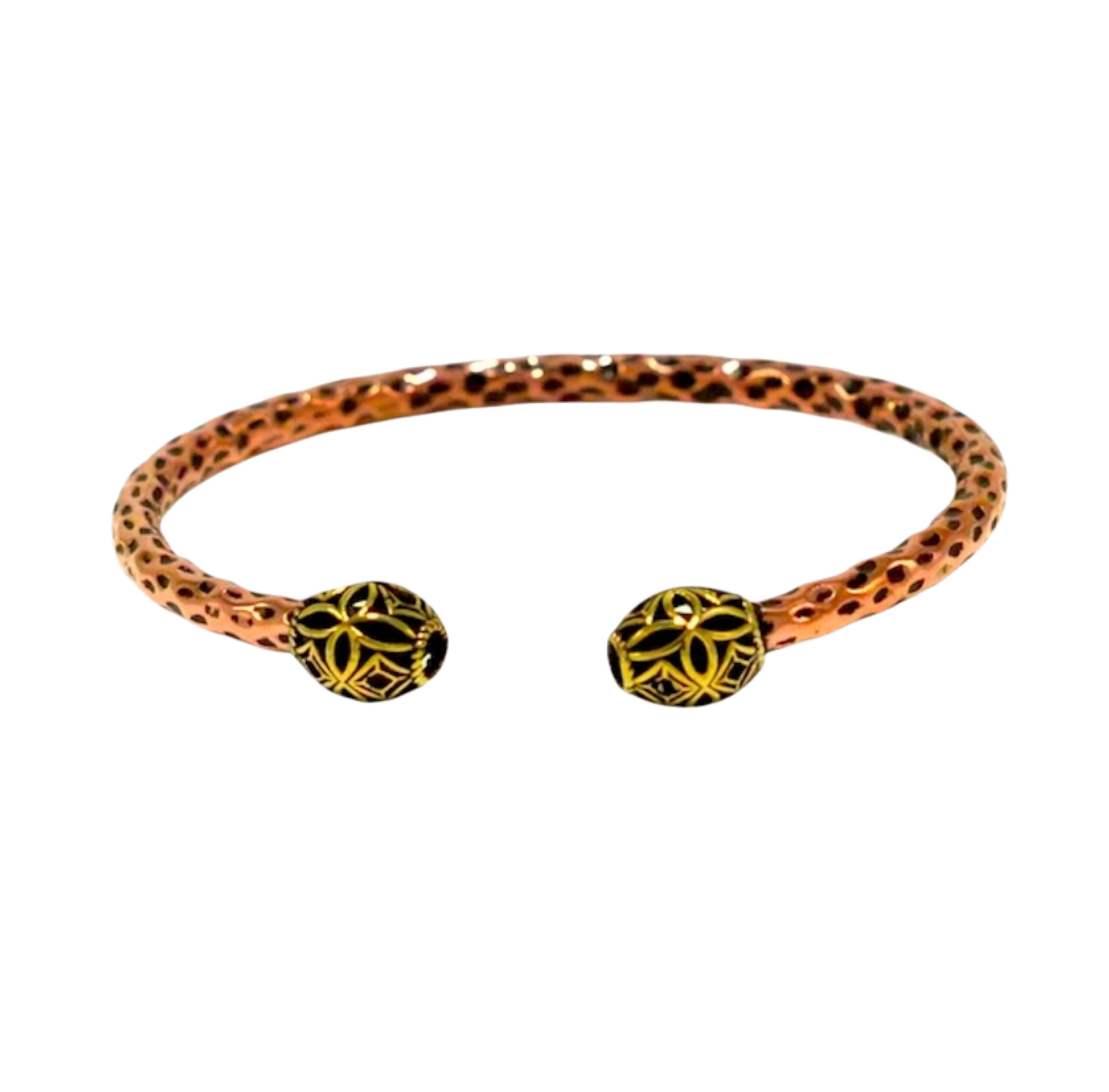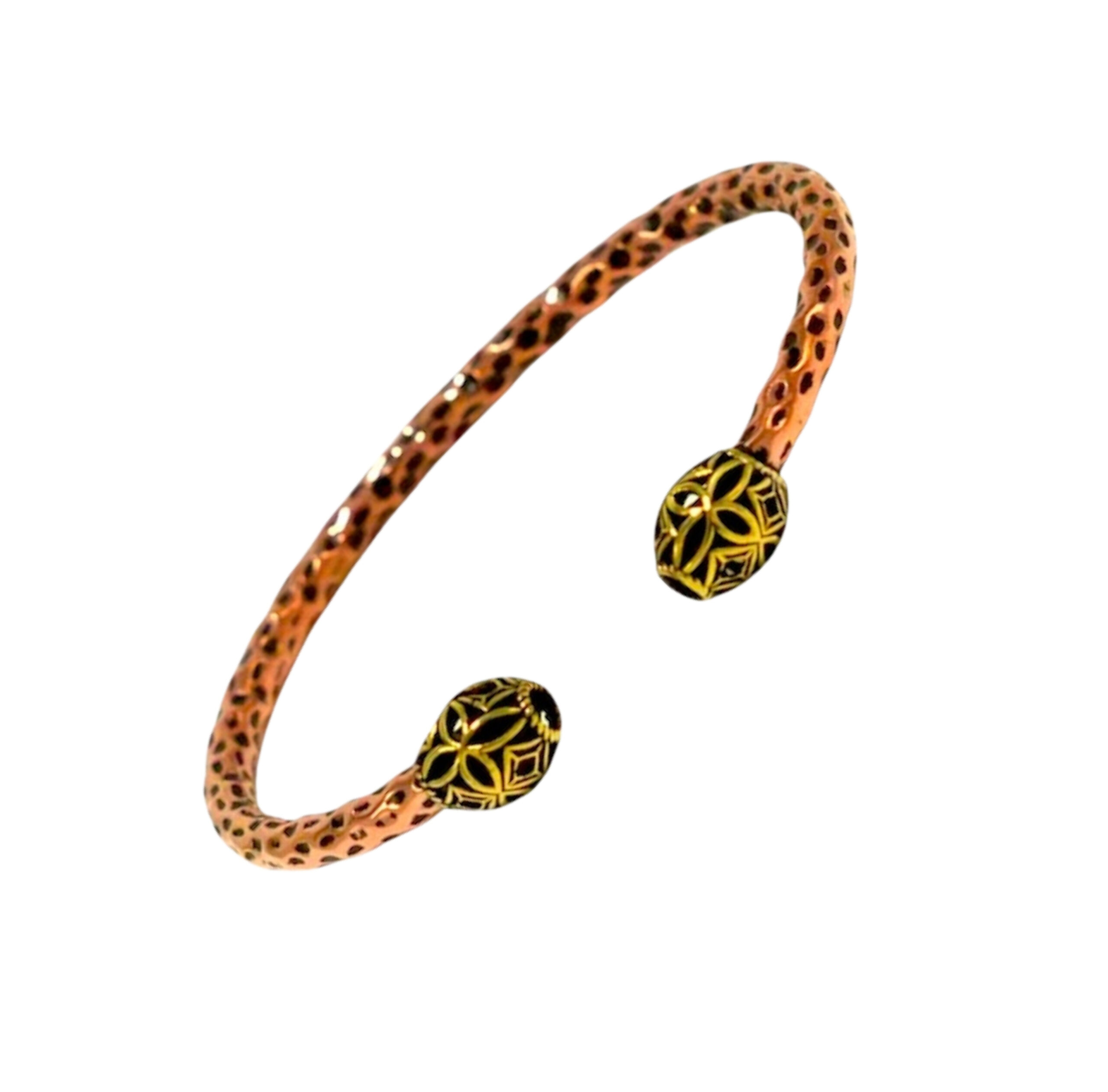 Madeni bakırdan, kuyumcu işçiliğiyle üretilmiş ve ayarlanabilir tasarımıyla konforlu kullanım sunar.