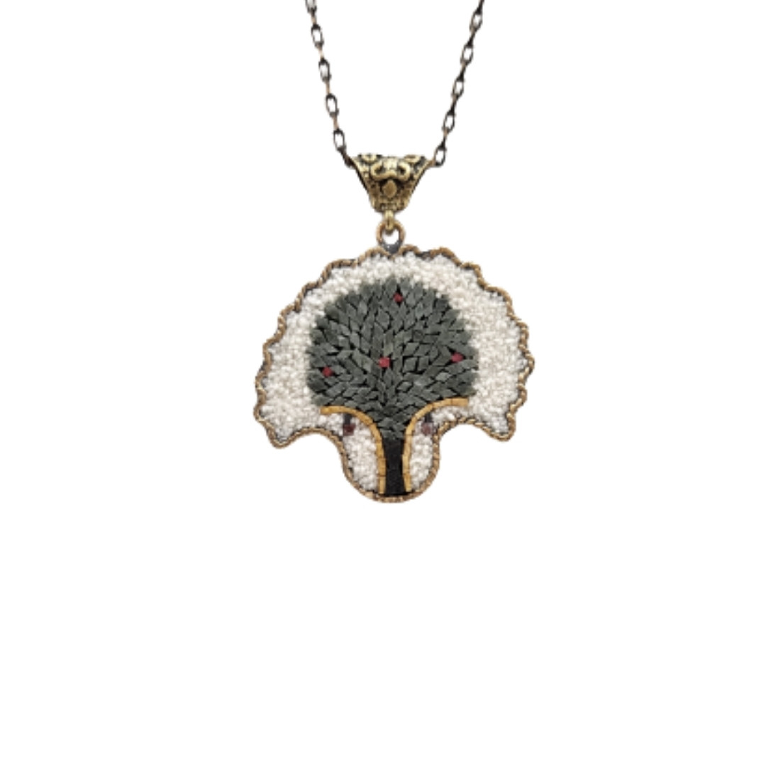 Mozaik Otantik Hayat Ağacı Kolye, el işçiliğiyle üretilmiş, mozaik sanatı ve antik tasarım öğeleriyle harmanlanmıştır. Kolyenin merkezindeki ağaç motifi, doğanın renklerini ve zarafetini yansıtır. Tarihi dokunuşlarla modern şıklığı bir araya getiren bu otantik kolye, mağazanızda farklı ve özel tasarımlar arayan müşteriler için ideal bir üründür.