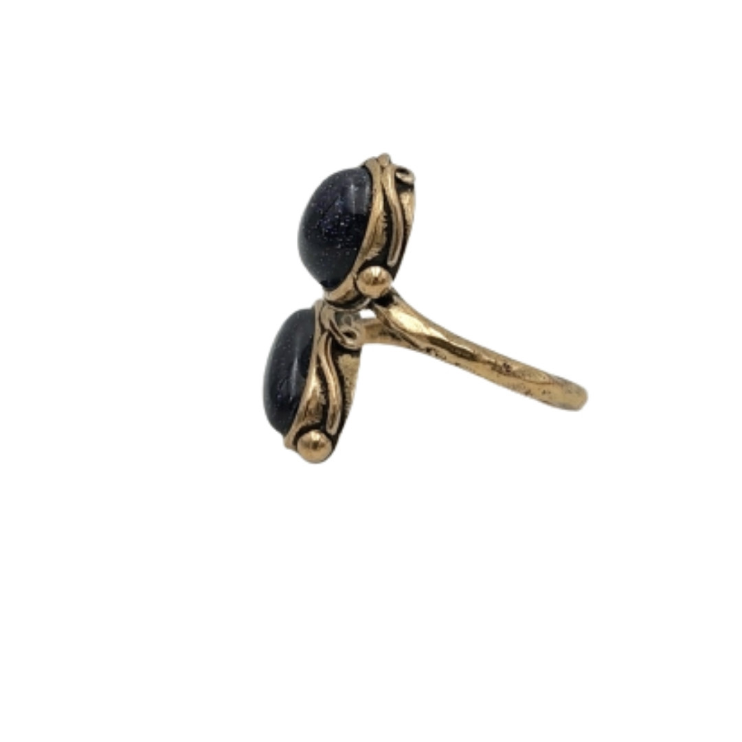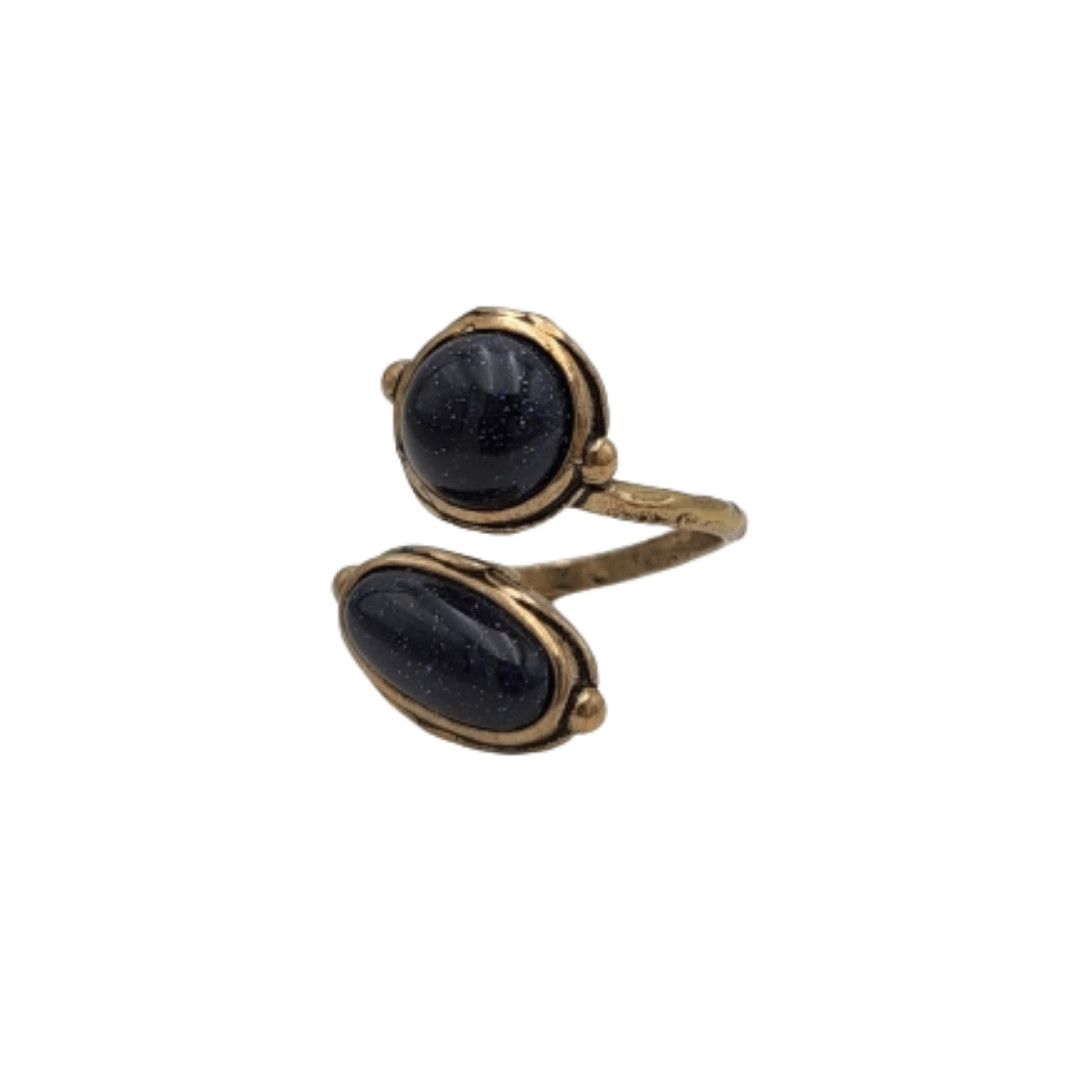 İkili Lacivert Yıldız Doğal taşlarıyla bezenmiş bu otantik bronz yüzük, kuyumcu işçiliğinin zarafetini yansıtan eşsiz bir tasarıma sahiptir. Doğal taşlarının pozitif enerjisi ve şifalı özellikleri, yüzüğe benzersiz bir anlam katmaktadır. Parmağa göre ayarlanabilir yapısı sayesinde her bedene uygun hale getirilebilen bu yüzük, hem günlük kullanımda hem de özel günlerde şıklığıyla dikkat çeker. El işçiliğinin zarif detaylarıyla otantik tarzı sevenler için ideal bir tercih. Benzersiz tasarımı ve doğal taşın enerjisiyle öne çıkan bu yüzük, mağazanızın koleksiyonuna şıklık katacak.