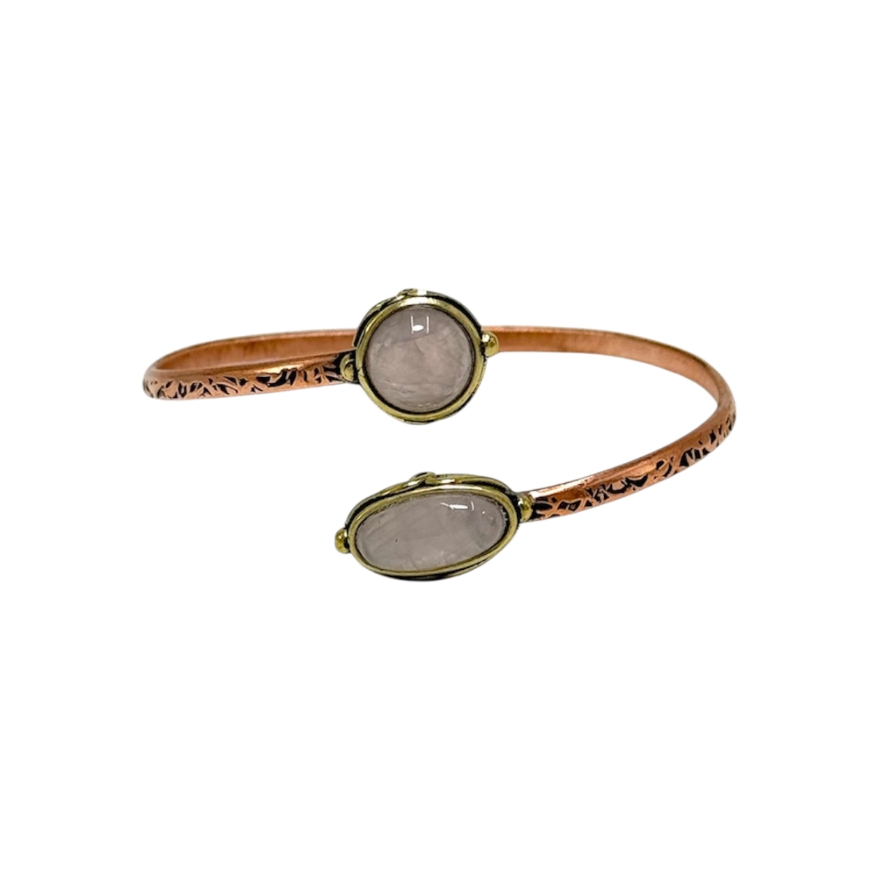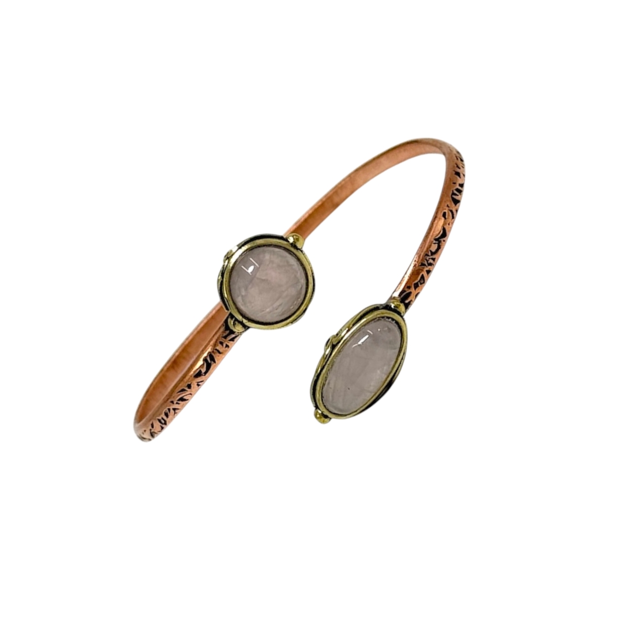 Pembe Kuvars İkili Doğal Taş Bakır Bilekliklerimiz, şıklığı ve doğallığı bir araya getiriyor. El işçiliği ile bakır üzerine yerleştirilmiş Pembe Kuvars taşı, bilekliğin zarif ve etkileyici görünmesini sağlıyor. Her bileğe uyum sağlayan ayarlanabilir yapısı ile günlük kullanım ve özel günler için mükemmel bir aksesuardır. Müşterilerinize doğal taşın enerjisini ve zarafetini sunarak benzersiz bir deneyim yaşatın.