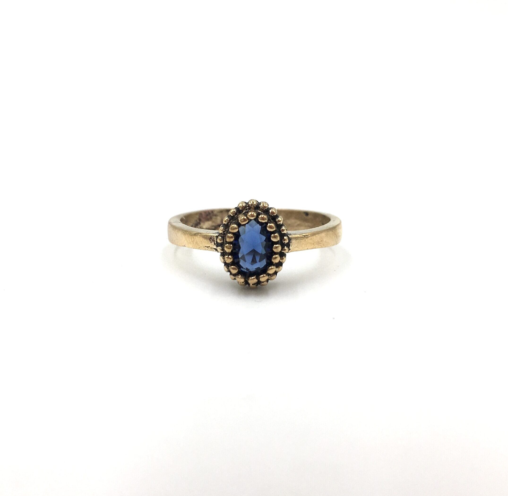 Safir Rengi Oval Tek Taş Otantik Bronz Yüzük