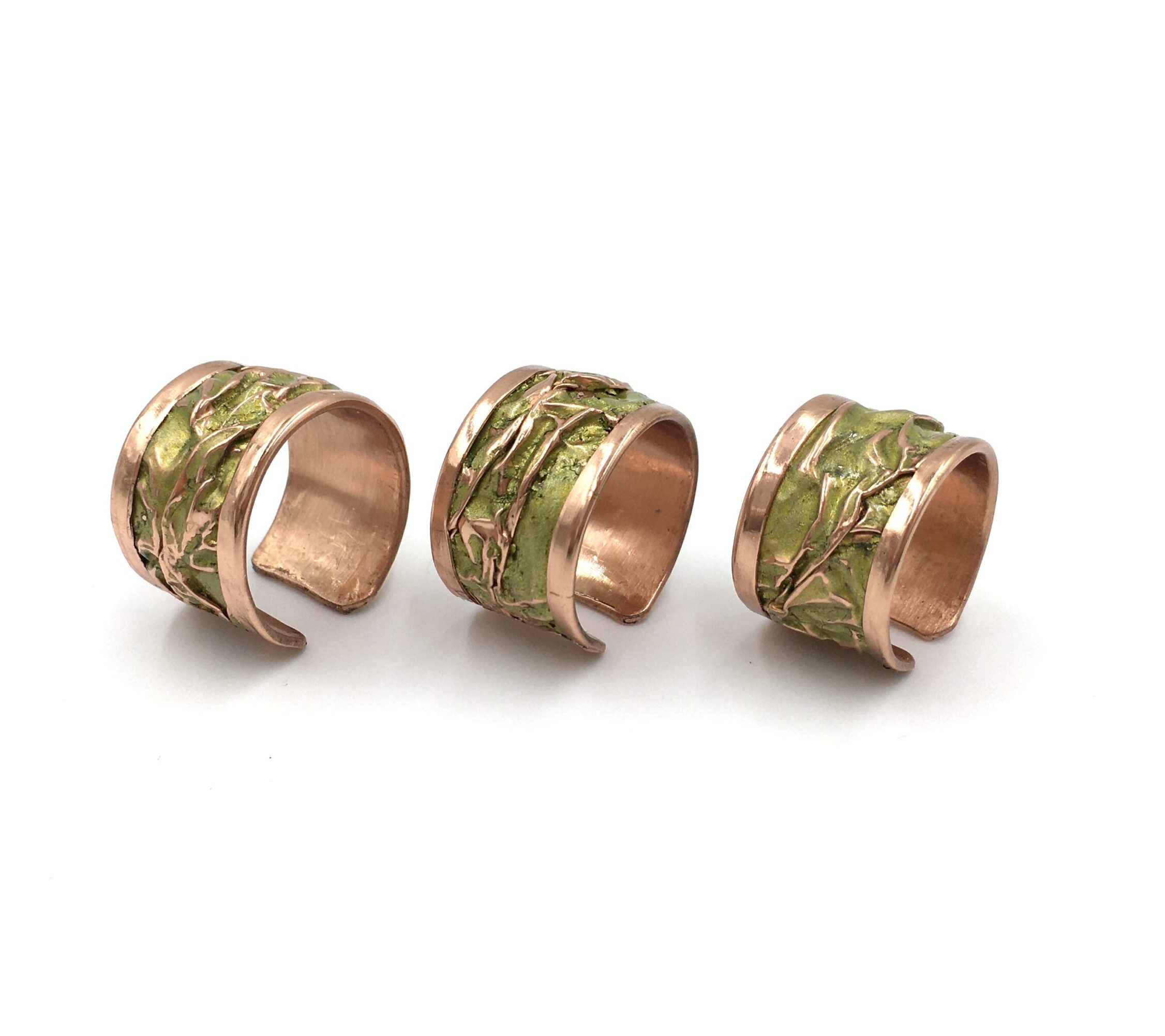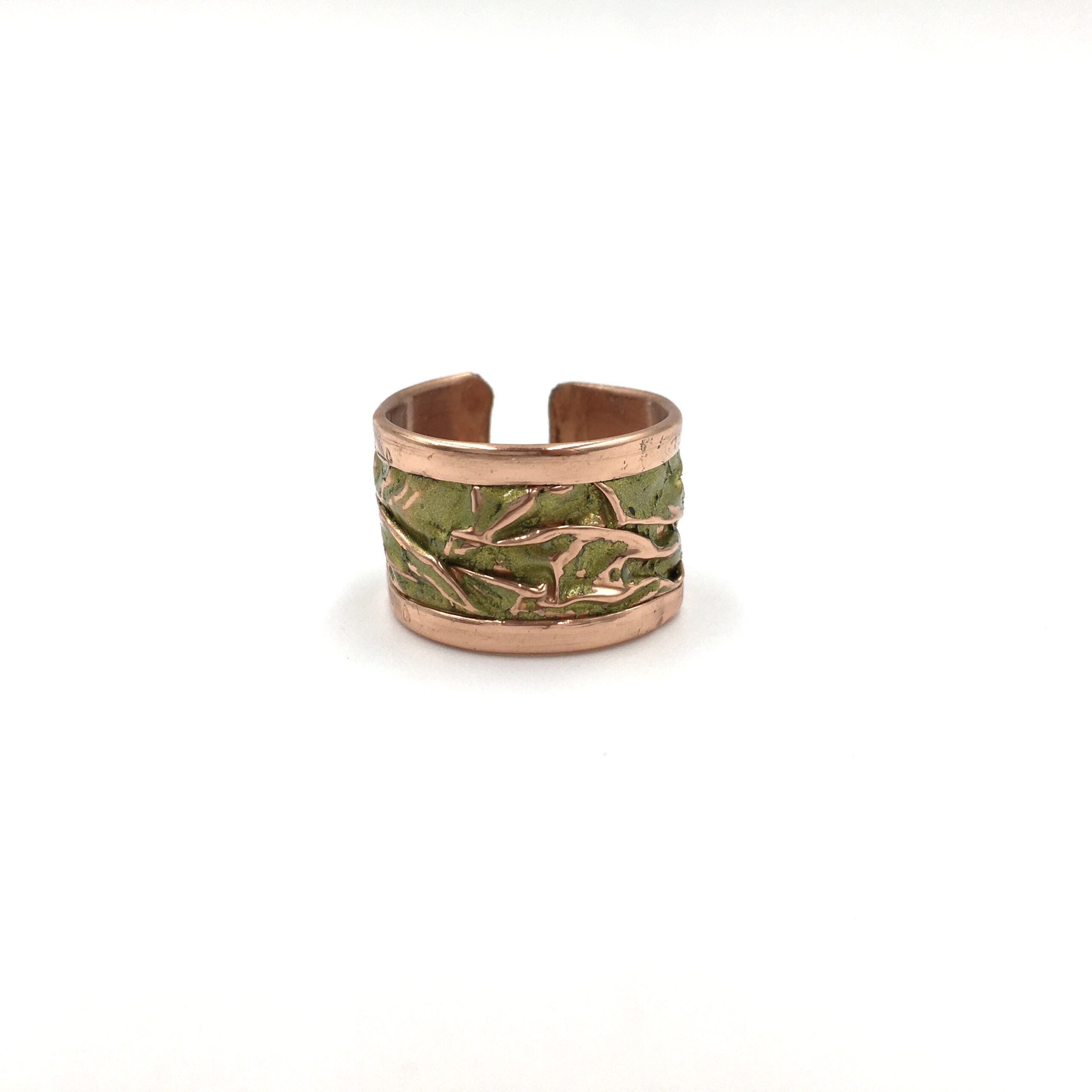 Madeni bakır, kuyumcu işçiliğiyle üretilmiştir, parmağa göre ayarlanabilir, şekil ve renk tonlarında küçük farklılıklar oluşabilir.
