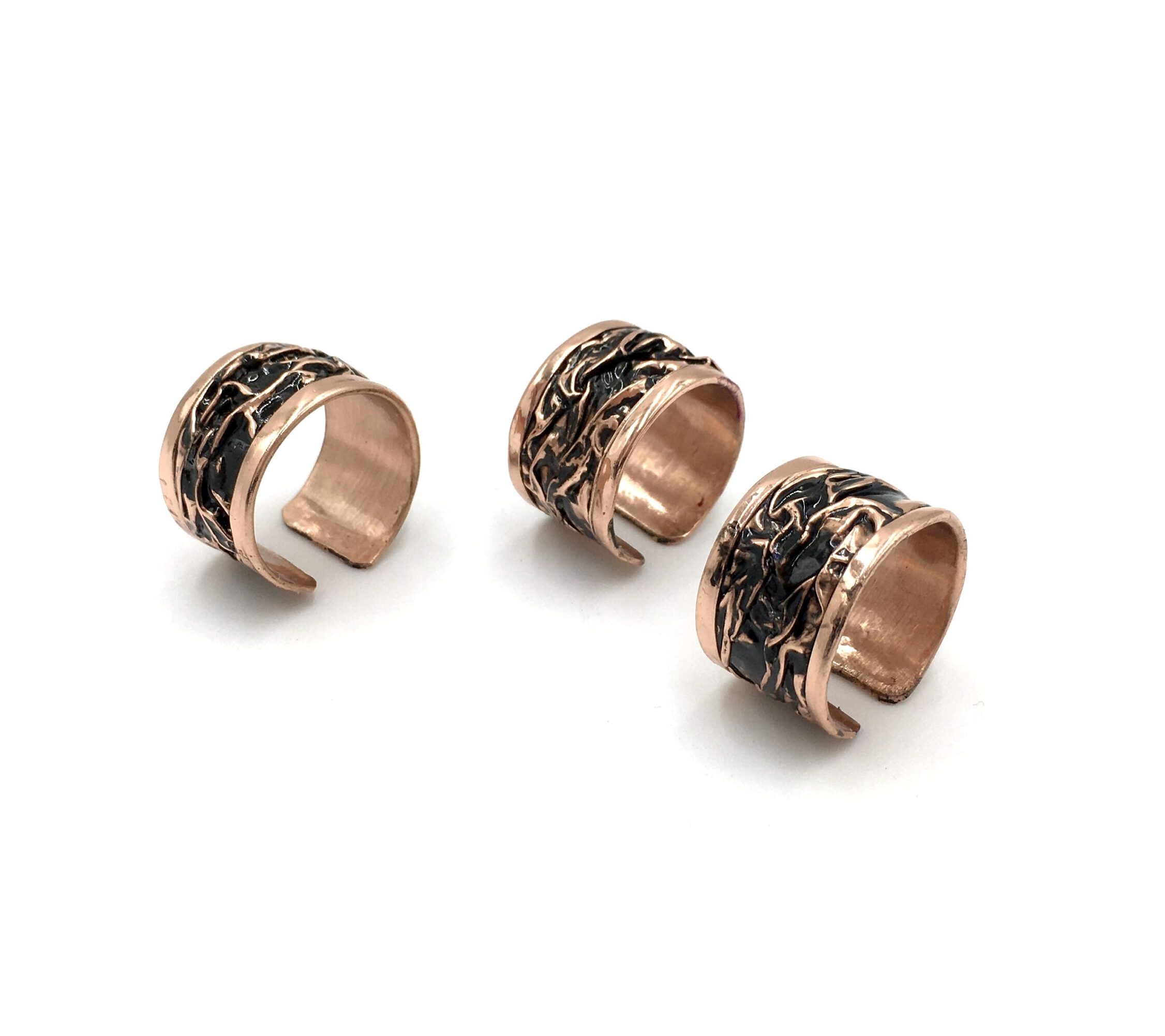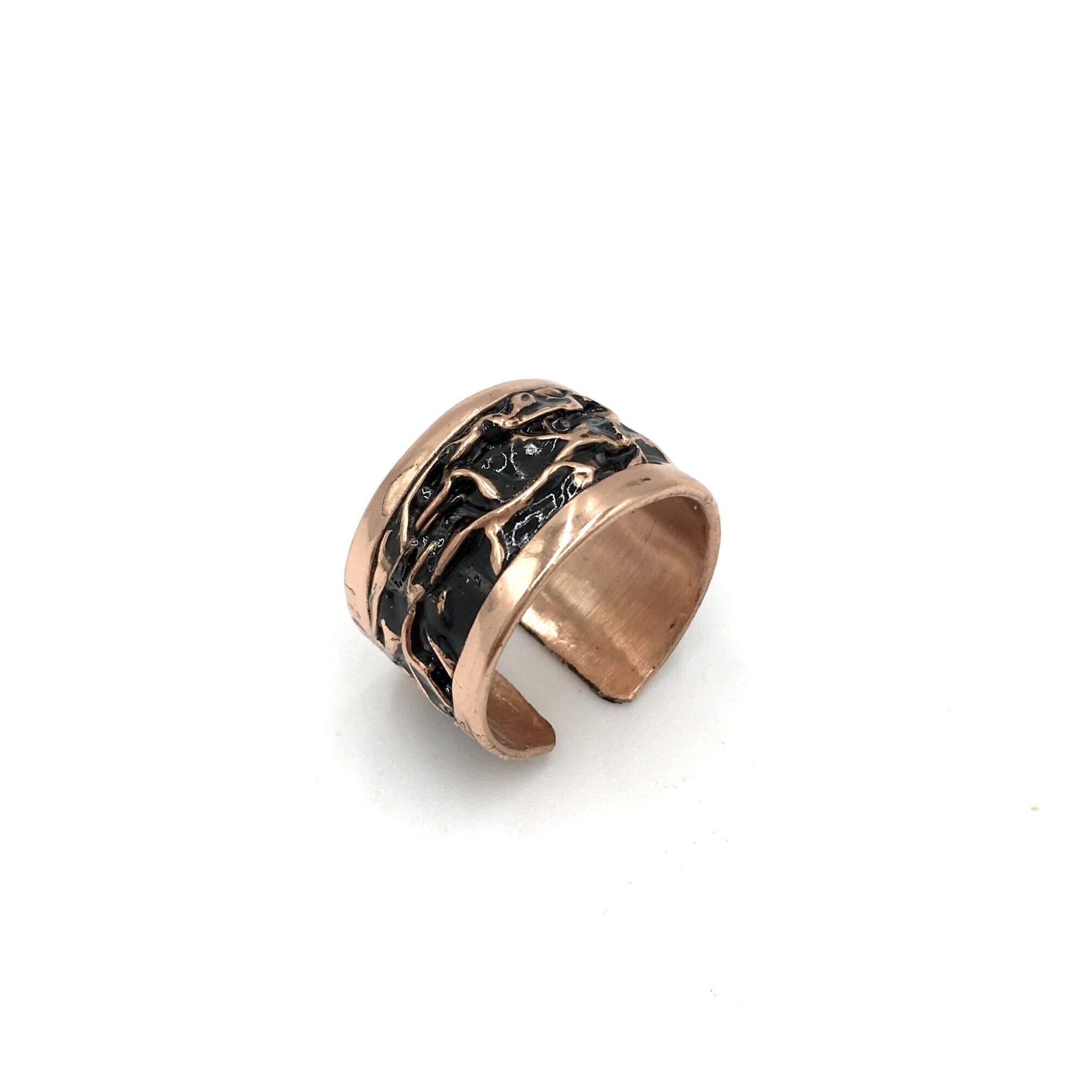 Siyah El İşi Otantik Bakır Buruşuk Yüzük, bakır malzemenin otantik ve sıcak dokusunu öne çıkaran özgün bir tasarımdır. El işçiliği ile hazırlanmış bu yüzük, bakırın doğal görünümünü ve buruşuk yüzey detaylarıyla farklı bir dokunuş sunarak tarzınıza karakter katar. Bakır malzemenin dayanıklılığı ve zarafeti, yüzüğe estetik bir derinlik kazandırırken, el işçiliğinin benzersiz incelikleriyle birleşerek özgün bir aksesuar oluşturur. Ayrıca bakır, vücut için faydalı bir metal olarak bilinir. Antik çağlardan bu yana bakır, vücutta enerji dengesini sağlamaya ve iltihaplanmayı azaltmaya yardımcı olabileceği düşüncesiyle kullanılmaktadır. Aynı zamanda ciltle temas ettiğinde doğal olarak pozitif iyonları artırdığı ve genel sağlığı desteklediği bilinmektedir. Parmağa göre ayarlanabilen yapısıyla her bedene uyum sağlayan bu özel tasarım, hem günlük hem de özel günlerde kullanım olanağı sağlar. Bakır yüzüğün otantik ve çarpıcı görünümü mağazanızın koleksiyonunda dikkat çeken bir parça haline getirecek.