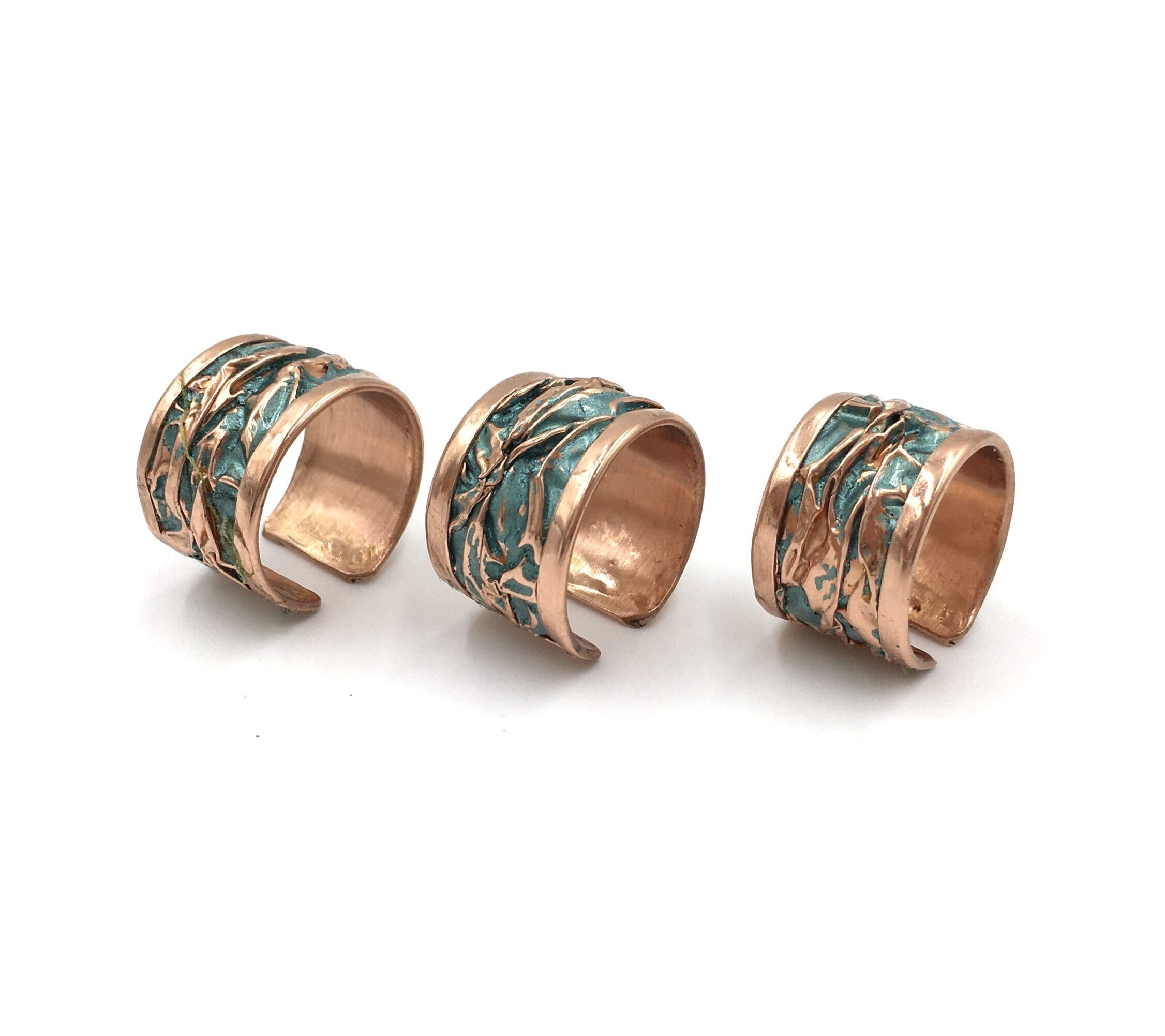 Turkuaz El İşi Otantik Bakır Buruşuk Yüzük, bakır malzemenin otantik ve sıcak dokusunu öne çıkaran özgün bir tasarımdır. El işçiliği ile hazırlanmış bu yüzük, bakırın doğal görünümünü ve buruşuk yüzey detaylarıyla farklı bir dokunuş sunarak tarzınıza karakter katar. Bakır malzemenin dayanıklılığı ve zarafeti, yüzüğe estetik bir derinlik kazandırırken, el işçiliğinin benzersiz incelikleriyle birleşerek özgün bir aksesuar oluşturur. Ayrıca bakır, vücut için faydalı bir metal olarak bilinir. Antik çağlardan bu yana bakır, vücutta enerji dengesini sağlamaya ve iltihaplanmayı azaltmaya yardımcı olabileceği düşüncesiyle kullanılmaktadır. Aynı zamanda ciltle temas ettiğinde doğal olarak pozitif iyonları artırdığı ve genel sağlığı desteklediği bilinmektedir. Parmağa göre ayarlanabilen yapısıyla her bedene uyum sağlayan bu özel tasarım, hem günlük hem de özel günlerde kullanım olanağı sağlar. Bakır yüzüğün otantik ve çarpıcı görünümü mağazanızın koleksiyonunda dikkat çeken bir parça haline getirecek.