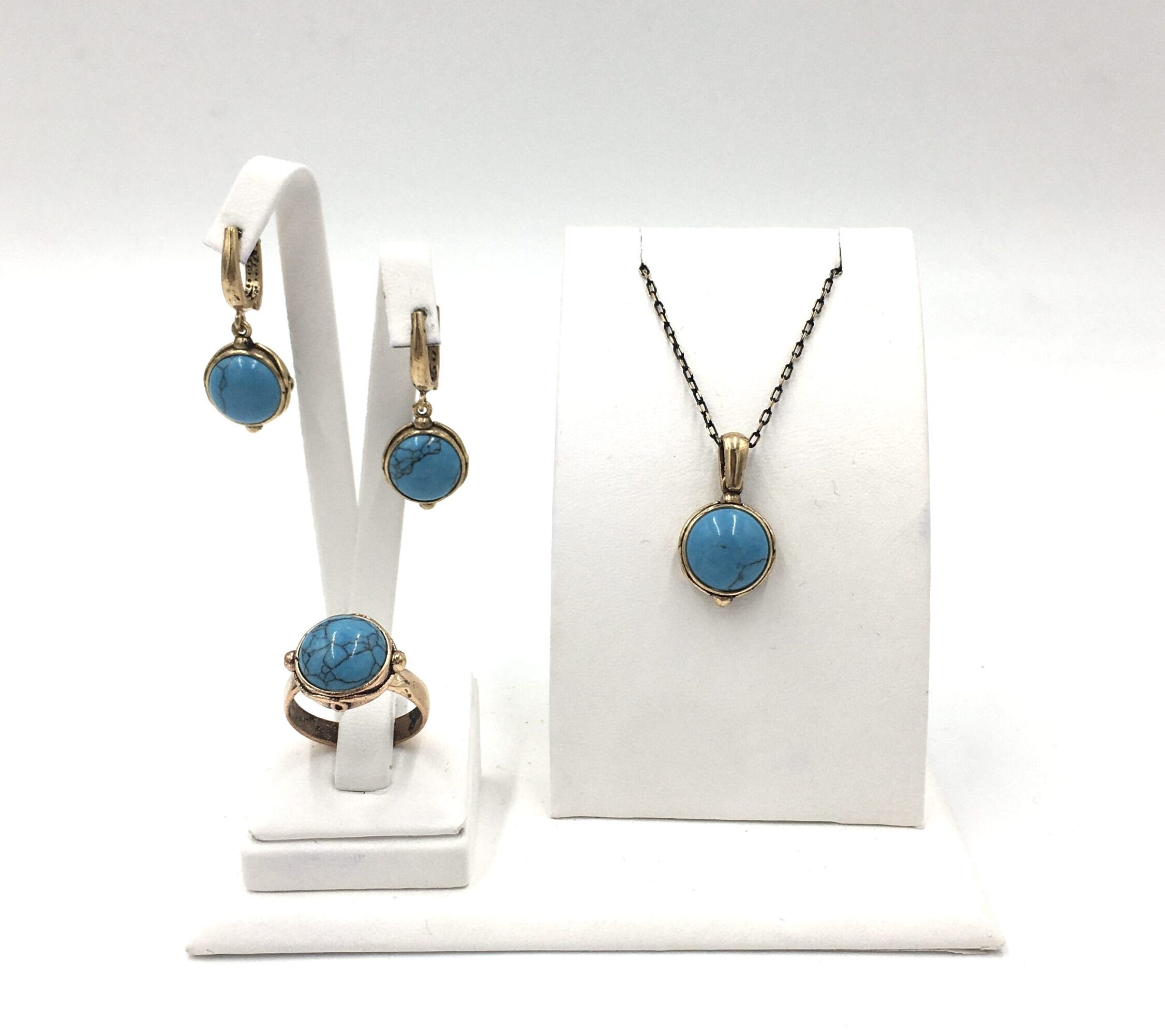 Turkuaz Taşı Doğal Taş Otantik Set, doğal taşların enerjisi ve otantik tasarımlarıyla öne çıkıyor. Setin içindeki her bir parça, madeni bronzdan üretilmiş ve ince kuyumcu işçiliği ile işlenmiştir. Parmağa göre ayarlanabilir yüzüğü ve dikkat çekici işçiliğiyle günlük kullanıma uygun olduğu gibi, özel günlerde de tercih edebileceğiniz bir set. Her takı parçası el işçiliğiyle üretilmiş olup, kalitesi ve tasarımıyla dikkat çeker. Otantik takılar sevenler için mükemmel bir hediye seçeneği olan bu set, müşterilerinize benzersiz bir tarz sunar.