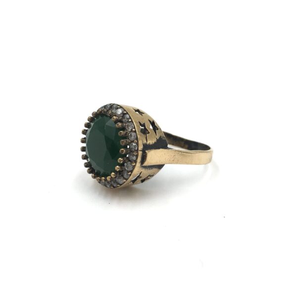 Yakut Rengi Tek Taş Otantik Bronz Yüzük, zarif ve klasik tasarımıyla dikkat çeken bronzun otantik dokusu ile cam taşın göz alıcı parlaklığını bir araya getiriyor. Cam taş, yüzüğün merkezinde yer alarak mücevhere şıklık ve zarafet katıyor. El işçiliği ile özenle işlenen bu yüzük, otantik tarzı sevenler için hem anlamlı hem de göz alıcı bir aksesuardır. Bronzun doğal dokusuyla mükemmel uyum sağlayan cam taş, yüzüğe zamansız bir güzellik kazandırıyor. Ayarlanabilir yapısı sayesinde her parmağa uyum sağlayan bu tasarım, mağazanızın koleksiyonuna şıklık katacak.