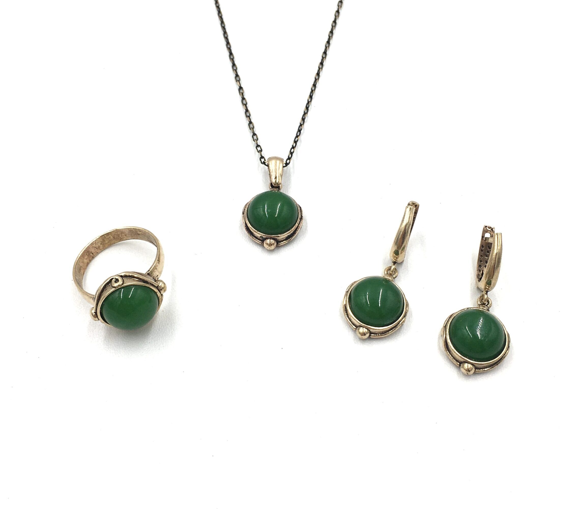 Yeşil Akik Doğal Taş Otantik Set, doğal taşların enerjisi ve otantik tasarımlarıyla öne çıkıyor. Setin içindeki her bir parça, madeni bronzdan üretilmiş ve ince kuyumcu işçiliği ile işlenmiştir. Parmağa göre ayarlanabilir yüzüğü ve dikkat çekici işçiliğiyle günlük kullanıma uygun olduğu gibi, özel günlerde de tercih edebileceğiniz bir set. Her takı parçası el işçiliğiyle üretilmiş olup, kalitesi ve tasarımıyla dikkat çeker. Otantik takılar sevenler için mükemmel bir hediye seçeneği olan bu set, müşterilerinize benzersiz bir tarz sunar.