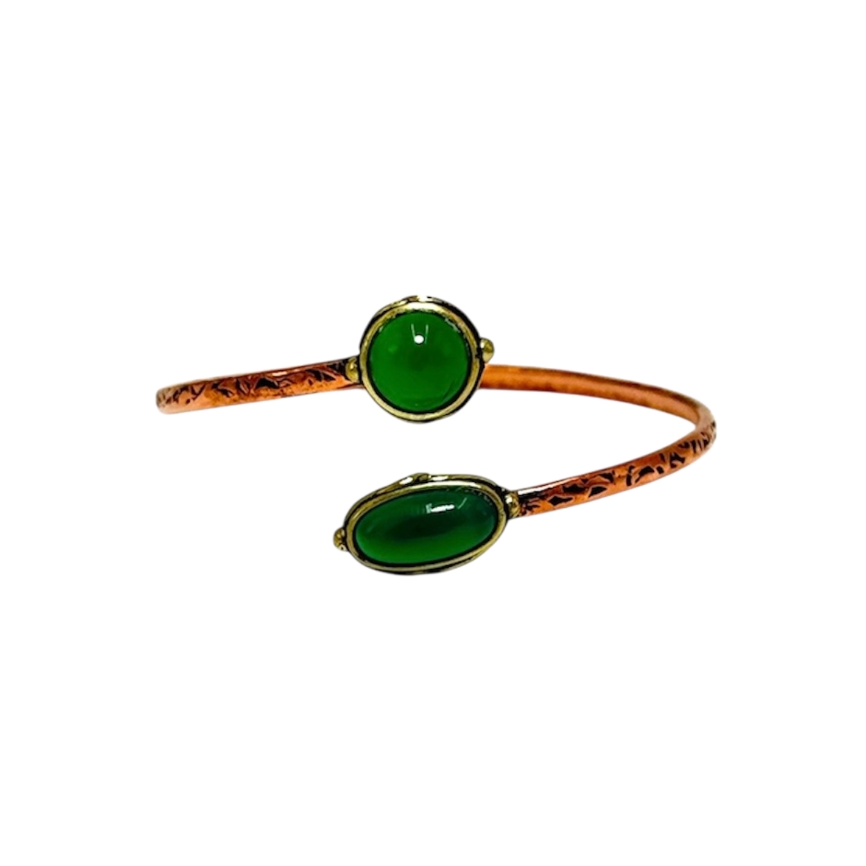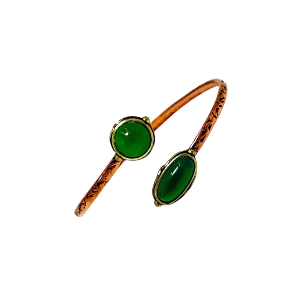 Yeşil Akik İkili Doğal Taş Bakır Bilekliklerimiz, şıklığı ve doğallığı bir araya getiriyor. El işçiliği ile bakır üzerine yerleştirilmiş Yeşil Akik taşı, bilekliğin zarif ve etkileyici görünmesini sağlıyor. Her bileğe uyum sağlayan ayarlanabilir yapısı ile günlük kullanım ve özel günler için mükemmel bir aksesuardır. Müşterilerinize doğal taşın enerjisini ve zarafetini sunarak benzersiz bir deneyim yaşatın.