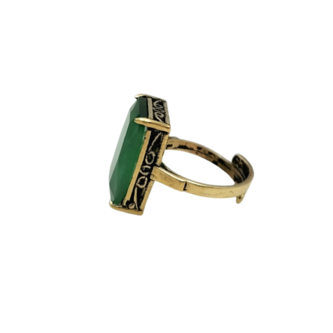 Yeşil Kedi Gözü taşıyla bezenmiş bu otantik bronz yüzük, özel kuyumcu işçiliğiyle üretilmiştir. Doğal kedi gözü taşının enerjisiyle harmanlanan bronz yüzüğümüz, hem şıklığı hem de otantik tasarımıyla göz kamaştırır. Parmağa göre ayarlanabilir yapısıyla her kullanıcıya uyum sağlar. Zarif detayları ve el yapımı dokunuşları ile günlük kullanımda veya özel günlerde fark yaratmak isteyenler için ideal bir seçimdir. Benzersiz tasarımı ve doğal taşın enerjisiyle öne çıkan bu yüzük, mağazanızın koleksiyonuna şıklık katacak.