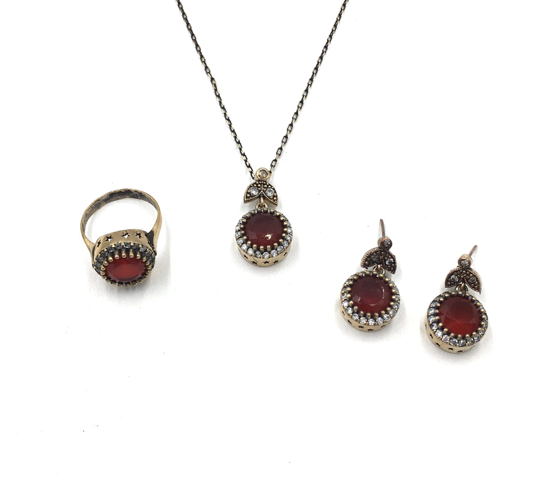 Yuvarlak Yakut Rengi Zirkon Otantik Set, doğal taşların enerjisi ve otantik tasarımlarıyla öne çıkıyor. Setin içindeki her bir parça, madeni bronzdan üretilmiş ve ince kuyumcu işçiliği ile işlenmiştir. Parmağa göre ayarlanabilir yüzüğü ve dikkat çekici işçiliğiyle günlük kullanıma uygun olduğu gibi, özel günlerde de tercih edebileceğiniz bir set. Her takı parçası el işçiliğiyle üretilmiş olup, kalitesi ve tasarımıyla dikkat çeker. Otantik takılar sevenler için mükemmel bir hediye seçeneği olan bu set, müşterilerinize benzersiz bir tarz sunar.